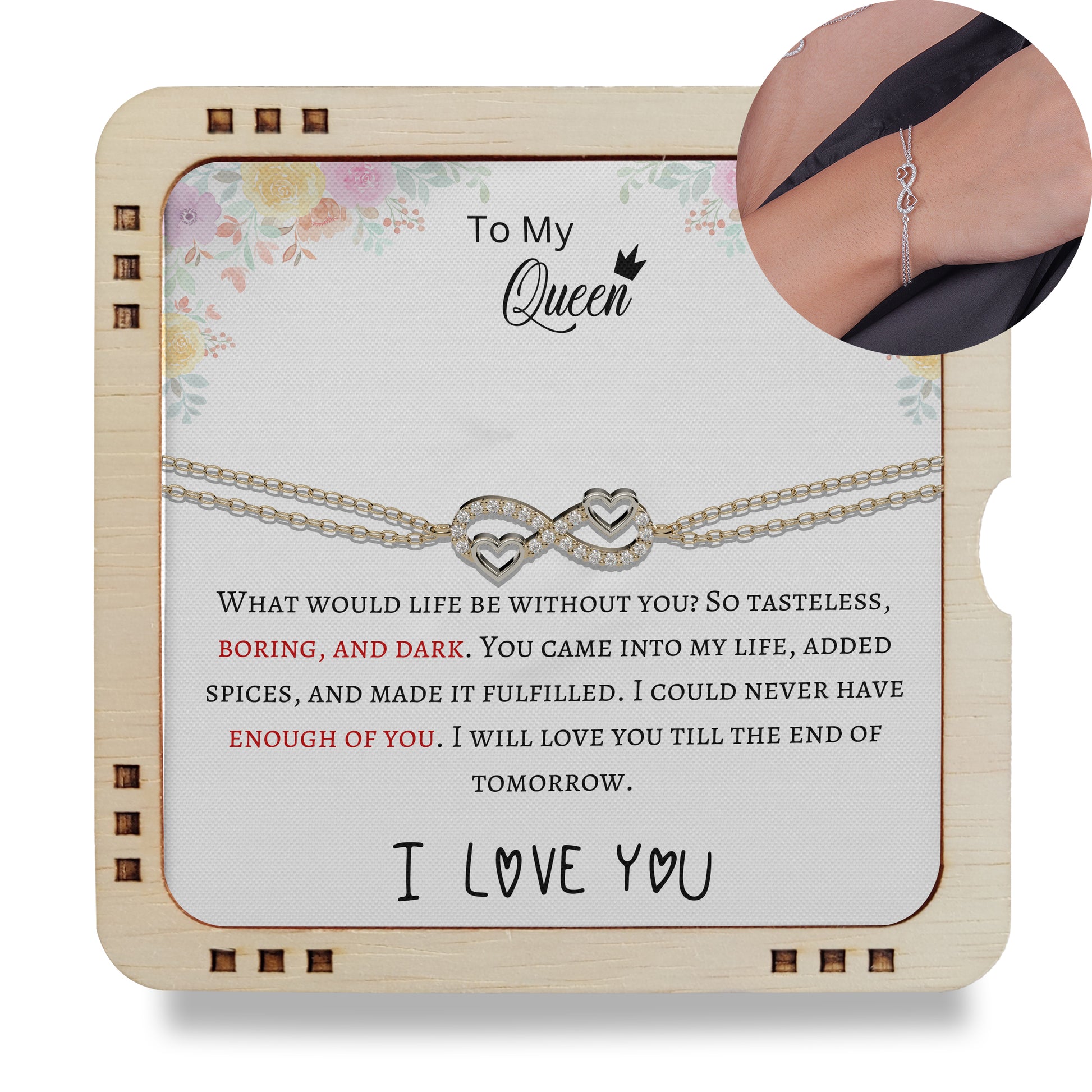 "This extraordinary gift carries the power of eternal connection, representing unbreakable bonds that transcend all relationships. For lovely Wife this remarkable token symbolizes the enduring love you share."