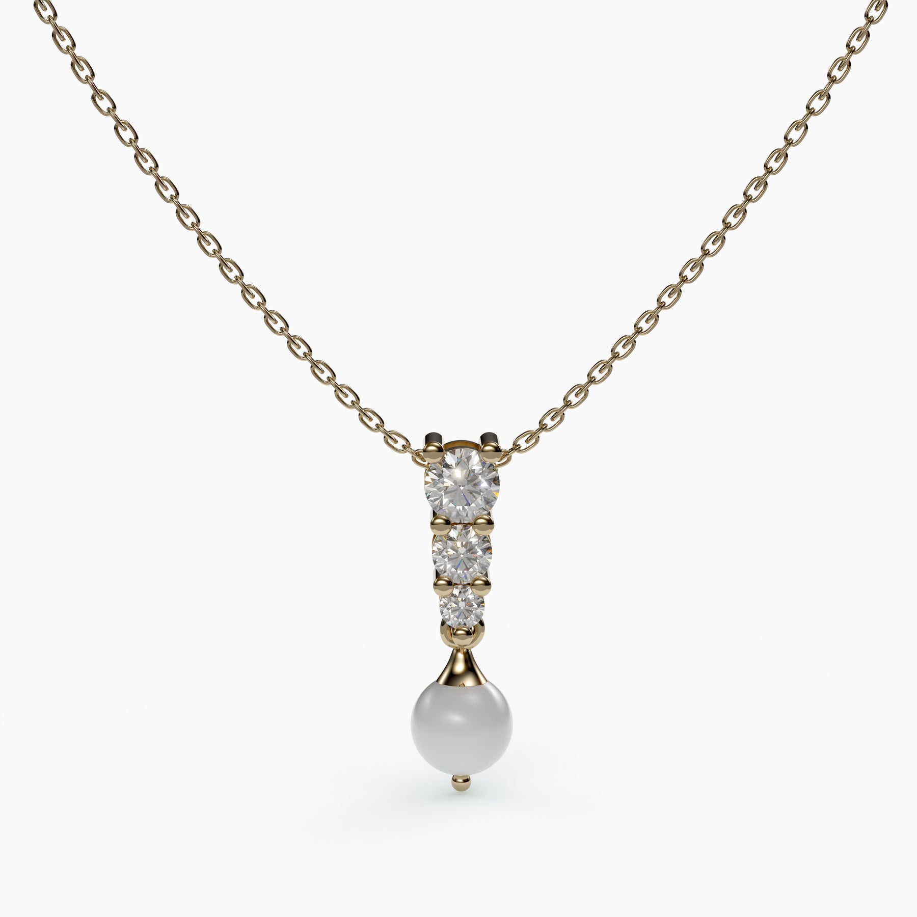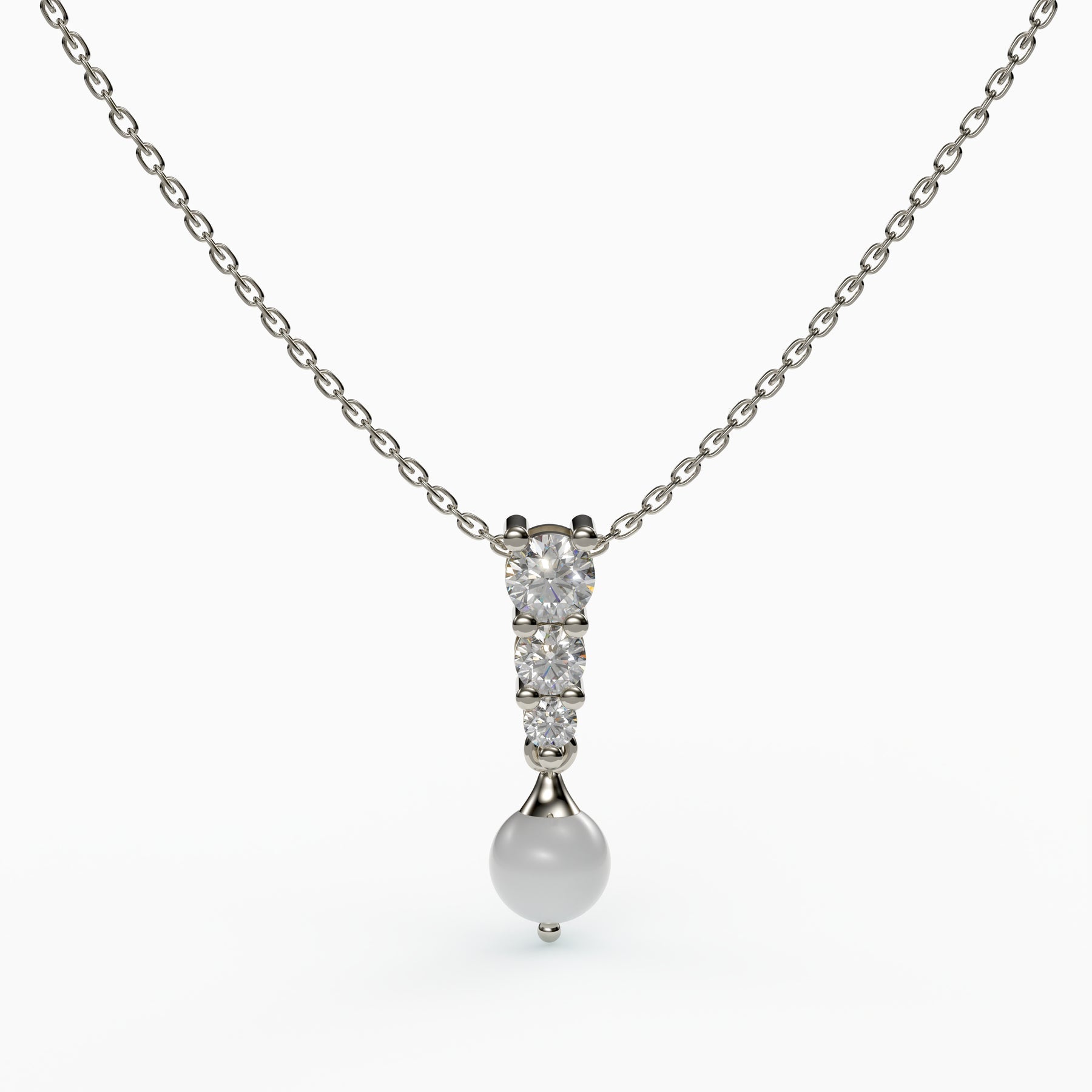 Pearl 3 Stone Necklace , 925 Sterling Silver