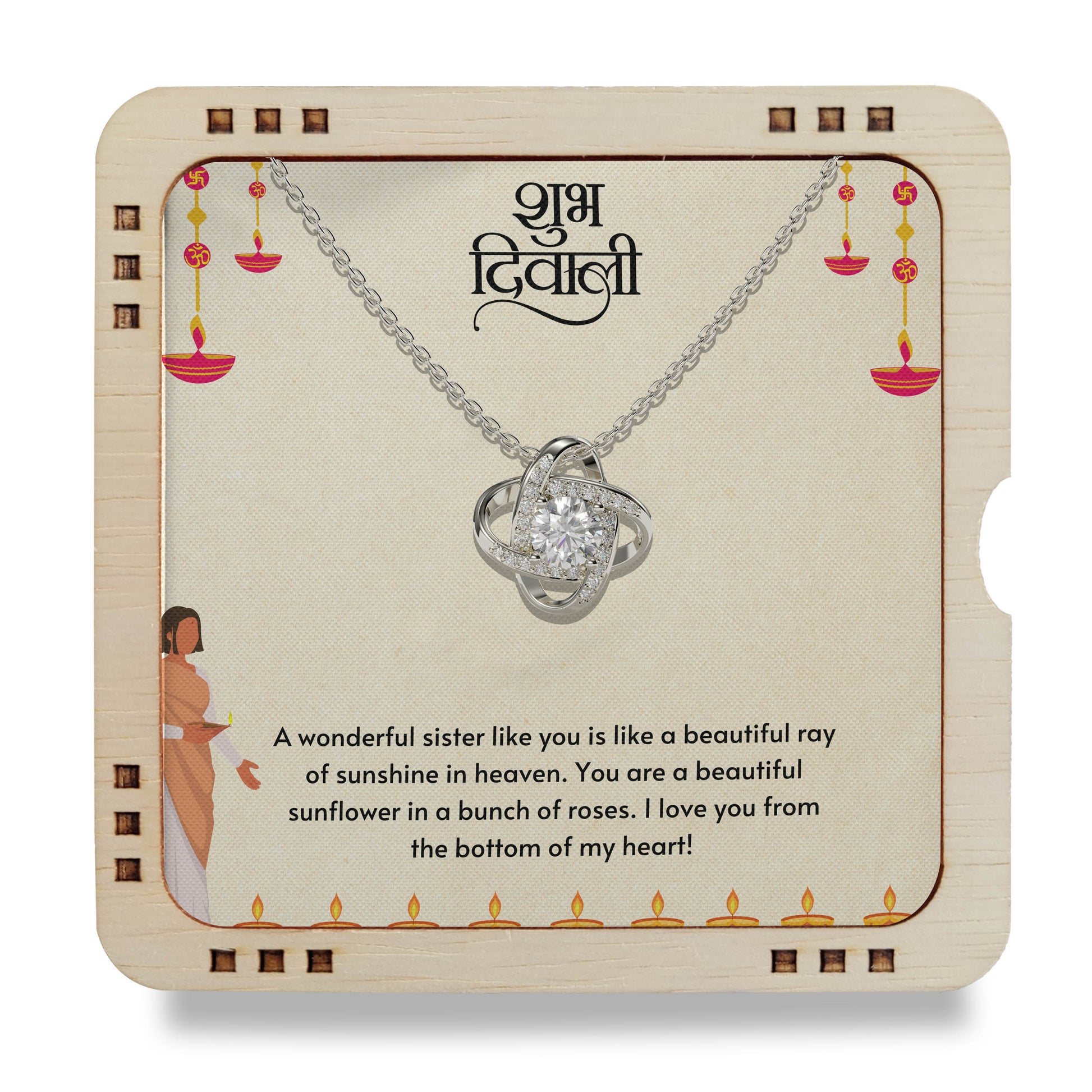 "This extraordinary gift carries the power of eternal connection, representing unbreakable bonds that transcend all relationships. For lovely Sister this remarkable token symbolizes the enduring love you share."