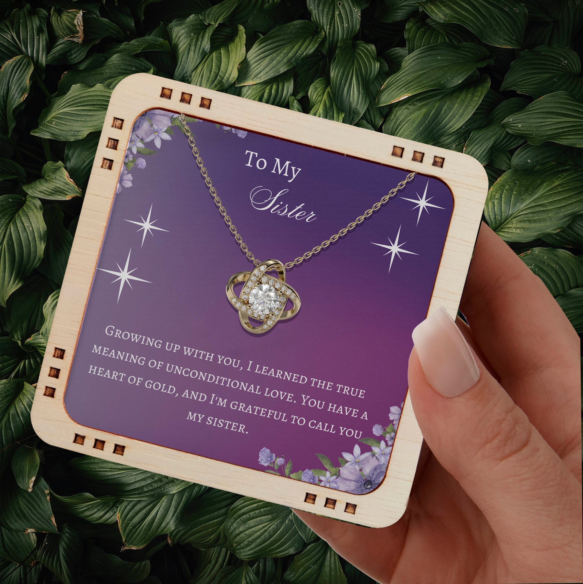 "This extraordinary gift carries the power of eternal connection, representing unbreakable bonds that transcend all relationships. For lovely Sister this remarkable token symbolizes the enduring love you share."