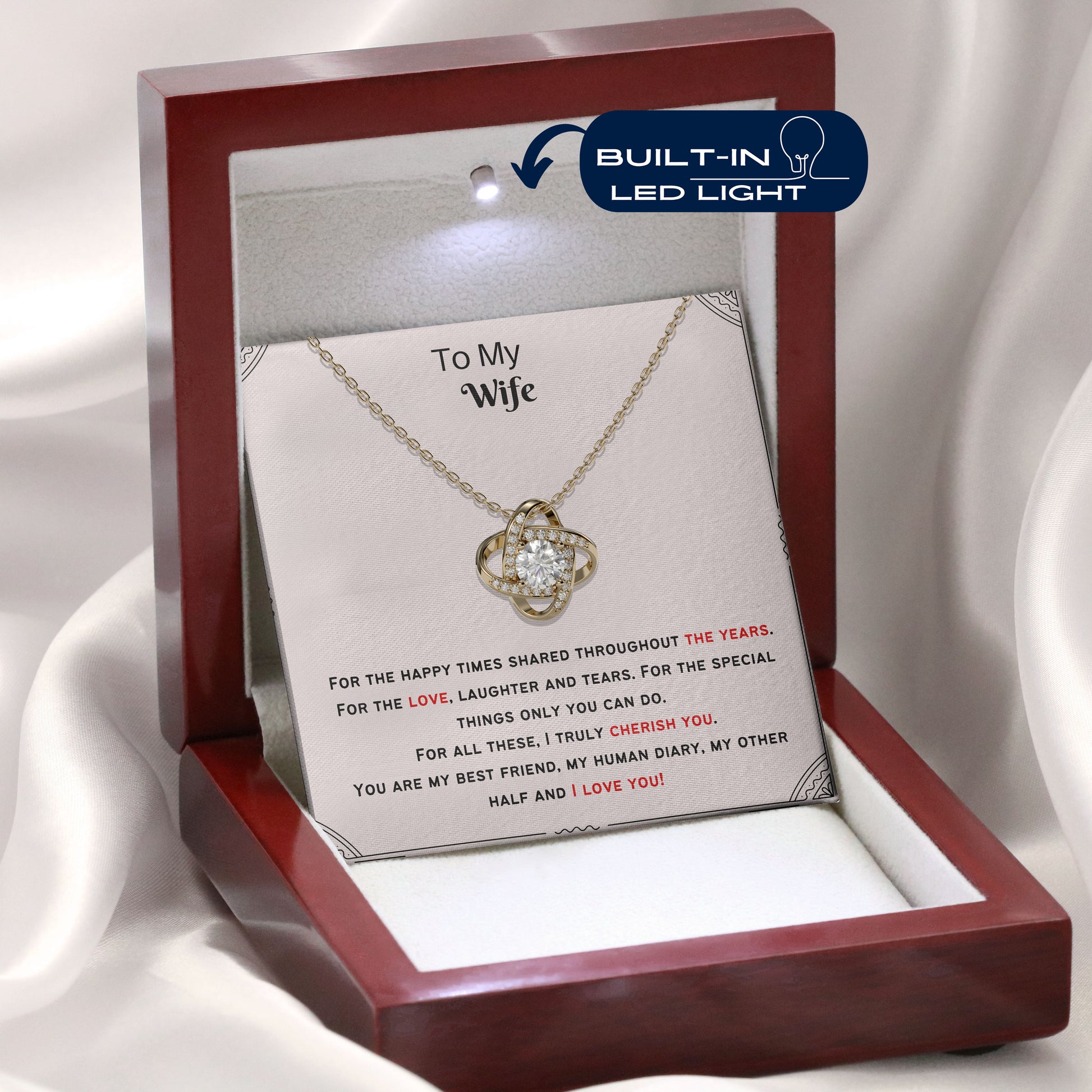 "This extraordinary gift carries the power of eternal connection, representing unbreakable bonds that transcend all relationships. For beautiful wife this remarkable token symbolizes the enduring love you share."